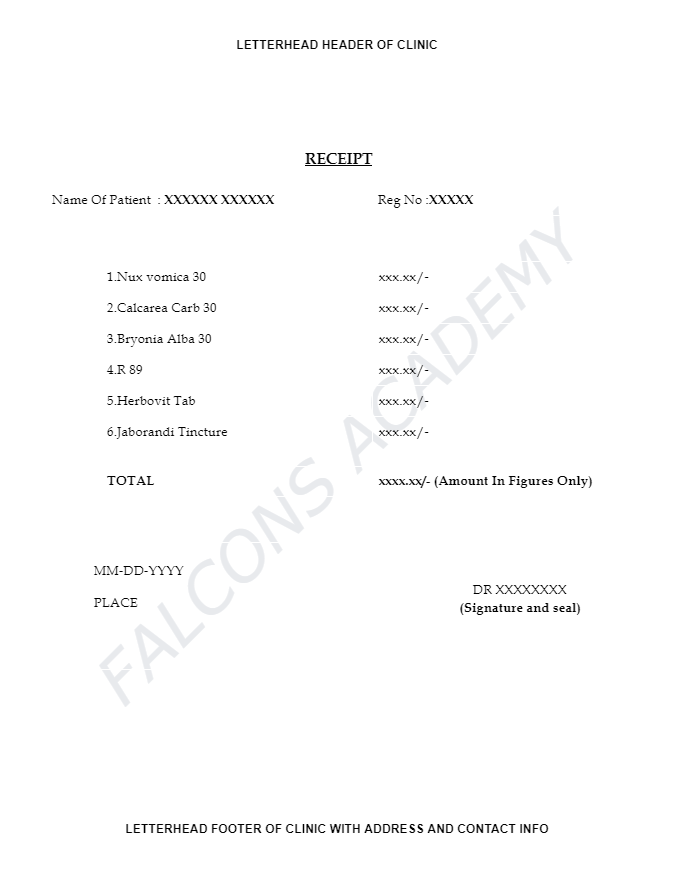 *For the purpose of sharing with patients when they request for a bill for insurance claim